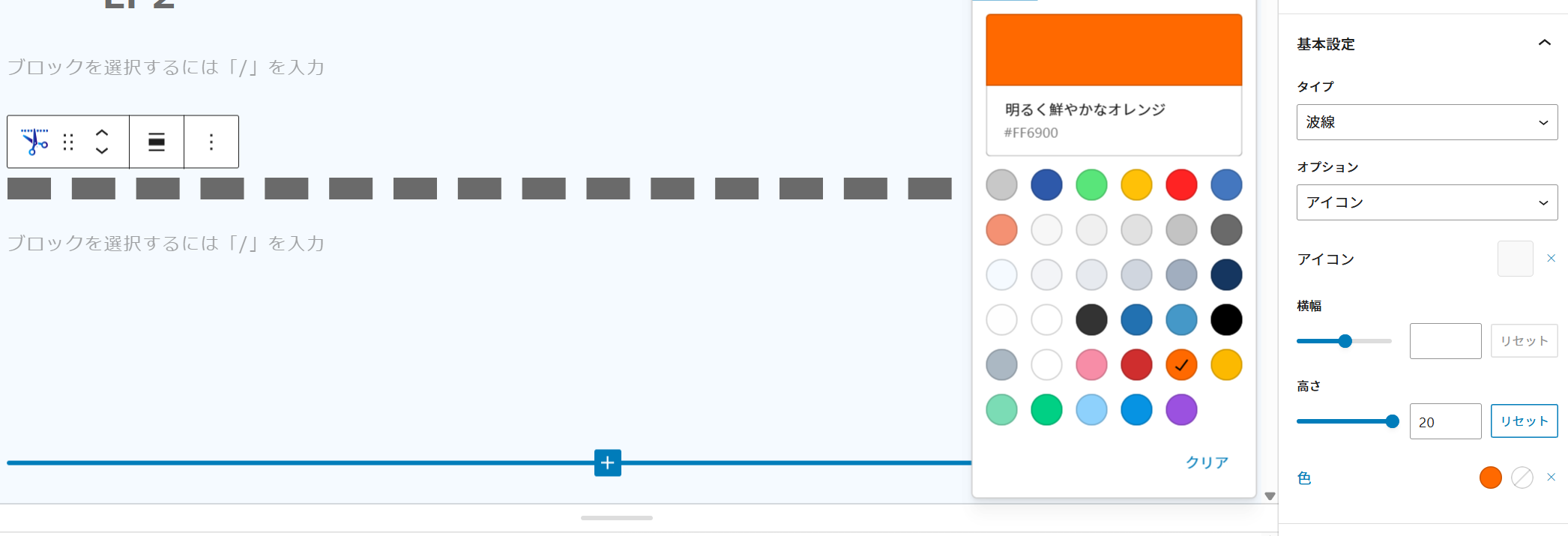 点線の色が変更できない受付中トラブル / バグ報告2025年11月19日 1:44 PM3日14時間前 いつもお世話になっております。 点線の色を指定しても反映されません。 ご確認よろしくお願いいたします。 1件の返信を表示中 - 1 - 1件目 (全1件中) 投稿者 返信 REDIVER タカギ 2025年11月22日 3:49 AM #63708 区切り線のカラー設定は、背景と色 の2種類がありますので、[色]を調整してください。 先頭に色の設定が来るように調整しましたのでDiver Blocksを更新してください。 投稿者 返信 1件の返信を表示中 - 1 - 1件目 (全1件中) このトピックに返信するにはログインが必要です。 ログイン ユーザー名: パスワード: ログイン状態を保持 ログイン