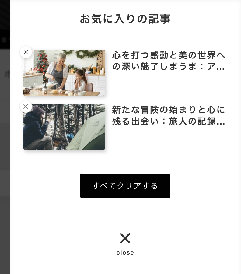 閲覧者が投稿内のブックマークボタンによって、ブックマーク済みの記事一覧を表示します。