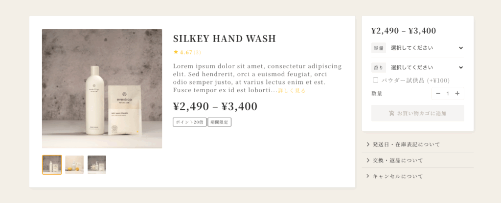 商品ページのデザイン