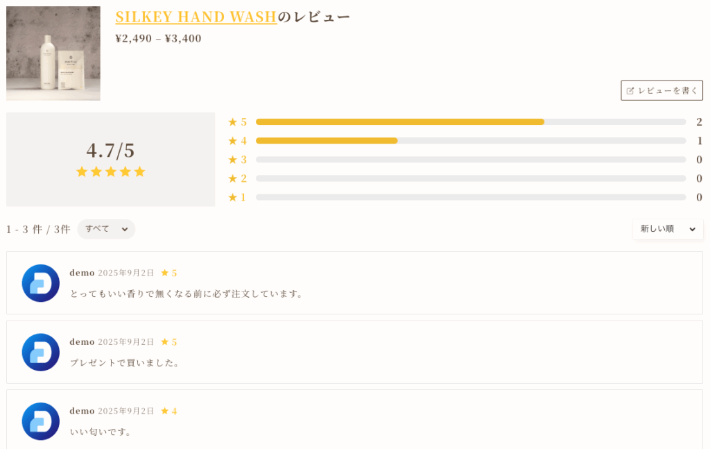 また、レビュー数が多いECサイトではレビューのみのページを作成してサイト評価に活かすこともできます。