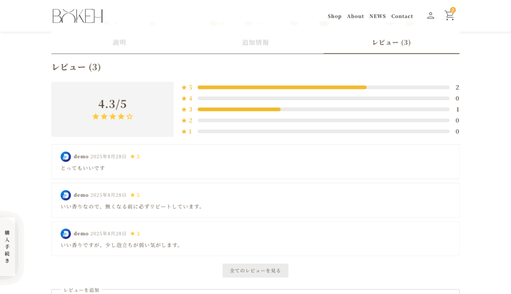 商品レビューはWordpressのコメント機能が活用されます。