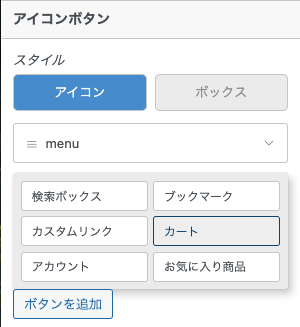 カスタマイザー > ヘッダー > 表示設定 - アイコンボタン
