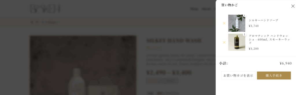カートへ追加ボタンも非表示になります。(追従するアクションエリアは表示されています。)単一の商品ブロック等を使用してカートへ追加ボタンを追加するのを推奨します。