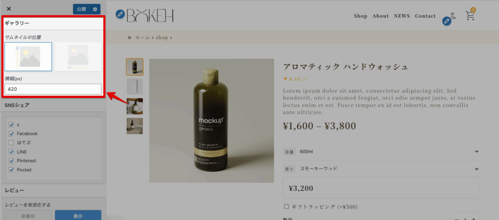 からギャラリーの表示を調整することができます。